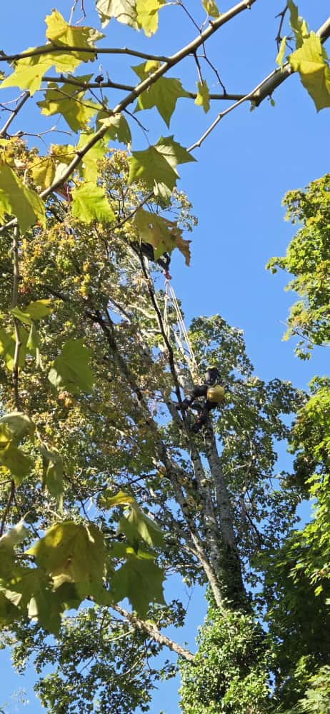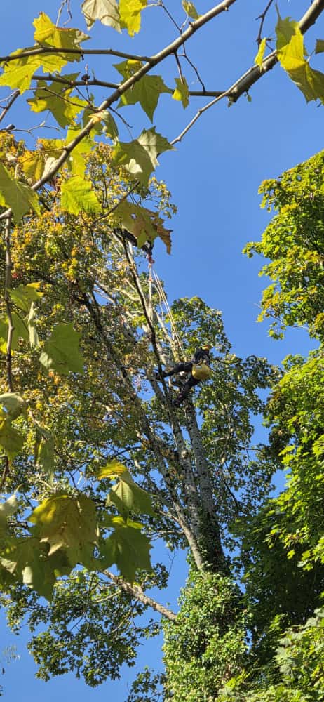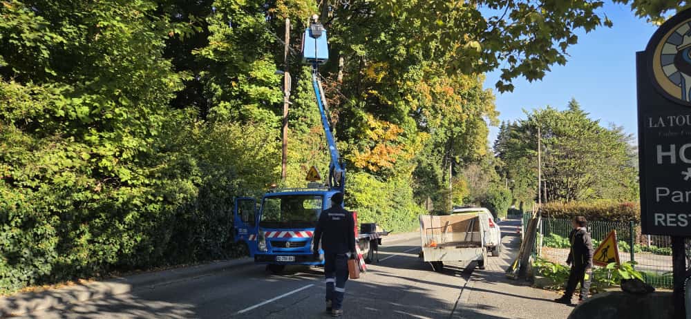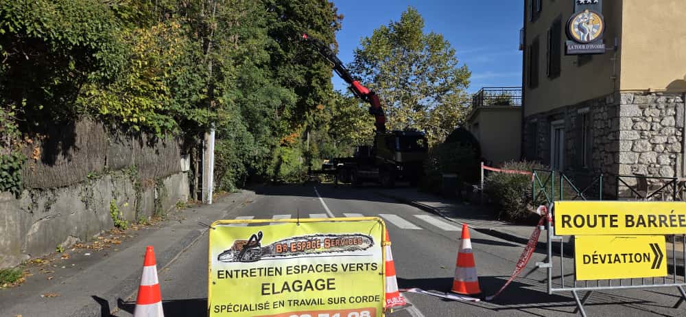 À la suite d’une intervention de nuit au mois d’août à Reignier, les équipes de BR Espace Services ont été sollicitées pour sécuriser définitivement un arbre dont la stabilité était fortement compromise et qui présentait un risque imminent de chute sur la voie publique.