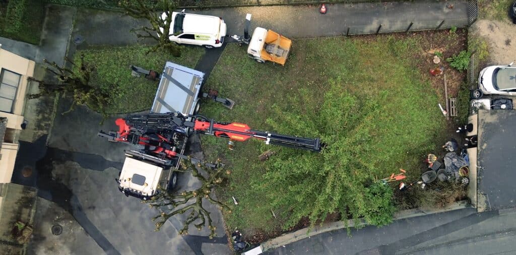 Démontage à la grue de 5 sapins à La Roche-sur-Foron